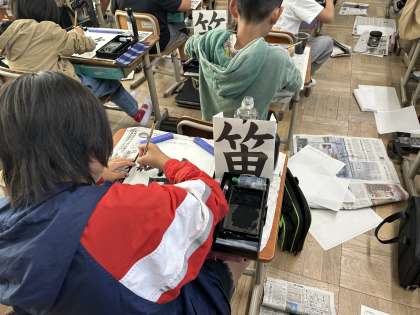 書写では「笛」という字を書きました。今回は上下のバランスに気を付けながら書いていました。上手に書けたかな?