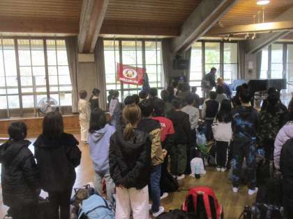 入所式で山の家の方にご挨拶。室内で行いました。