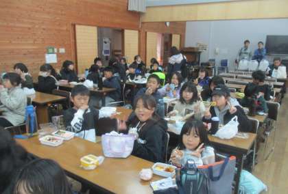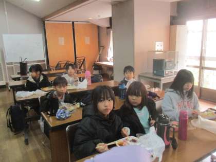 お弁当も室内で食べました。まだ外の地面は濡れています。
