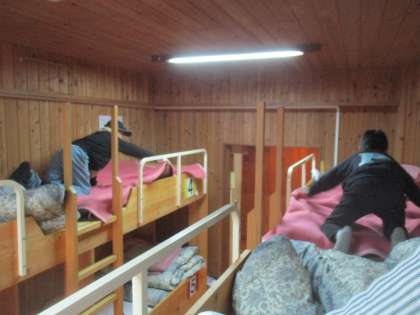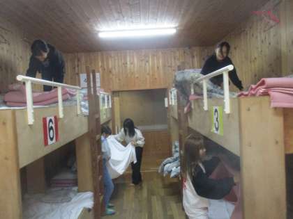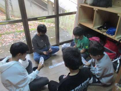 自分たちの寝具は自分たちで敷く。終わったら,お楽しみタイム。