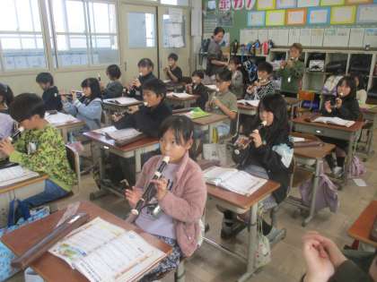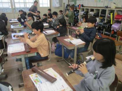 3年生から始まったリコーダーの学習。上手に吹くことができる子も増えていました。でも、まだ、苦手な子もいるようです。おうちでも聞いてあげてください。