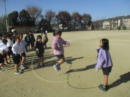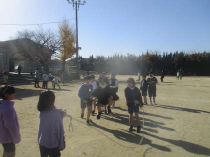 今週、大縄大会があります。それに向けて、クラスで大縄の練習をしていました。