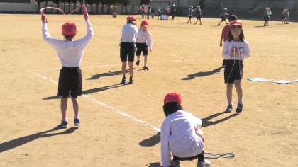 体育の学習でなわとびあそびに挑戦しました。