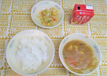 2学期最後の給食は児童に人気があるカレーでした。