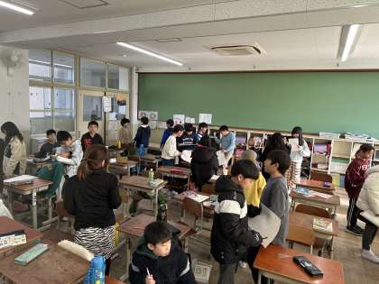 冬休みにしたことをビンゴにして交流しました。色々楽しそうな声が聞こえてきました。