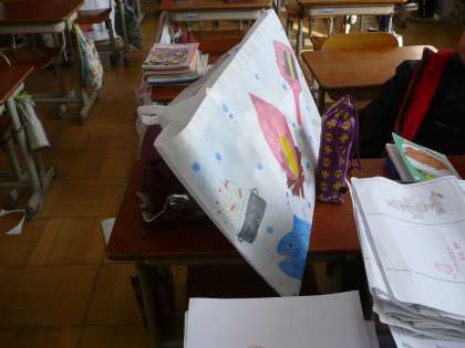 荷物や作品袋を持ち帰っています。