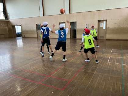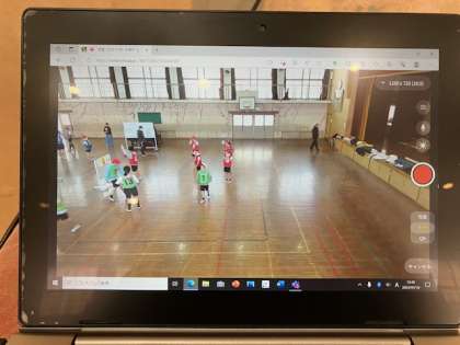 体育のバスケットボールでは,試合の様子を動画に撮っています。動画を観ることで,自チームや相手の動きがわかり,次の動きへとつなげることが出来ます。