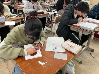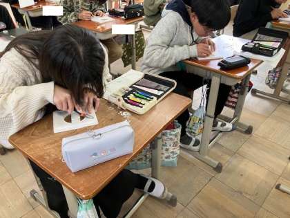 図画工作では卒業制作に取りかかっています。作品は置時計です。卒業への想いを込めながら丁寧に作業する姿がありました。