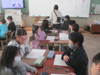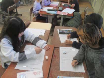 自慢したいことを班で一つ決めるために、みんなで話し合っていました。