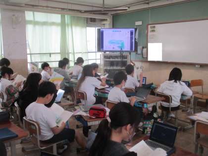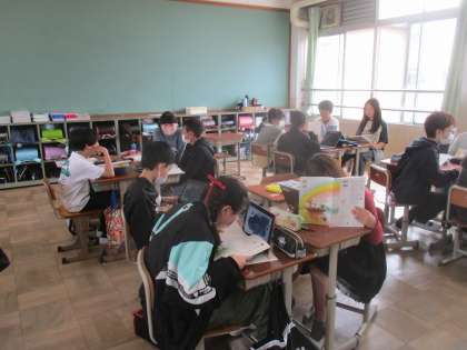 国語の学習で、音読をしていました。並行して、ロイロノートで音読の宿題を提出する方法も確認していました。
