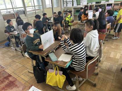 班で「ひみつの言葉ゲーム」をしました。まずは一人にひみつの言葉を決めて,自然な会話の中でその言葉を引き出そうとがんばって話していました!