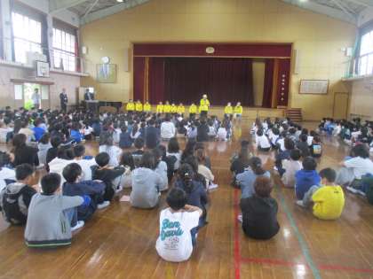 今日の2時間目、見守り隊感謝の集いを行いました。お言葉をいただいたり、感謝状をお渡ししたりしました。
