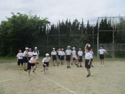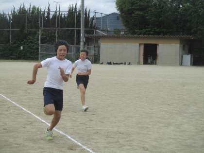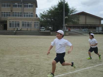6年生が50m走のタイムを計測していました。さすが6年生。とっても足が速い児童もいました。