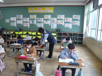 毎日ひらがなの学習を頑張っている1年生です。今日はとめとはらいに気を付けながらひらがなの練習をしました。