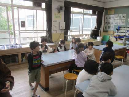 理科室や音楽室、家庭科室などを探検しました。教室に戻って、ふりかえりもしました。