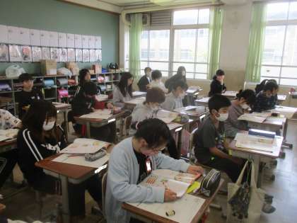 家庭科の学習の様子です。朝食の役割について考える学習でした。
