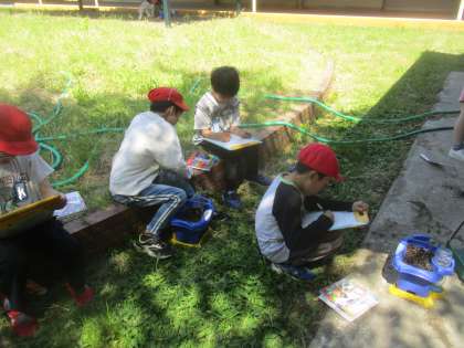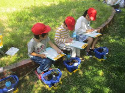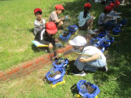 ミニトマトの観察をしました。天気も良くて、生長が楽しみですね。