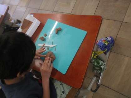 粘土で、いろいろなごちそうを作っていました。「先生!見て〜!」と、とても楽しそうでした。
