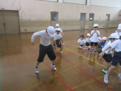 先生にどんなふうにするか教えてもらった後、実際にしてみました。速くできるようにがんばっていました。