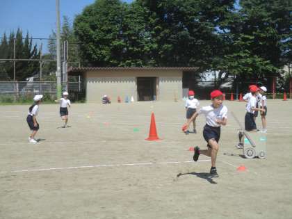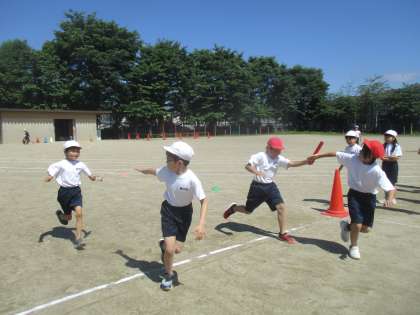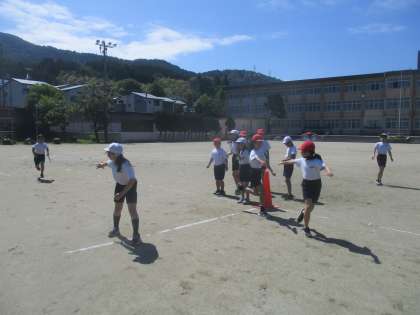 体育では、今、リレーの学習に取り組んでいます。上手にバトンパスできている子どもが多かったです。
