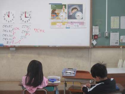 算数で時間と時刻つにいて学習していました。毎日の生活の中で、定着していくものです。この学習をきっかけに、日常で時間や時刻の話題を出すことにより、学習を定着させていきたいです。
