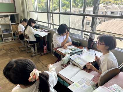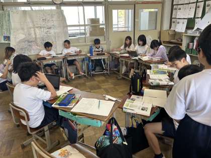 5年生は低い土地か高い土地を選んで調べを行っています。それぞれ調べたことを伝えるために一生懸命調べていました。一生懸命って素敵だな〜♪