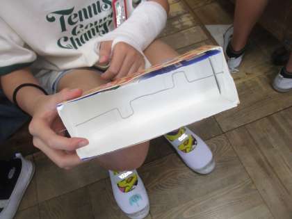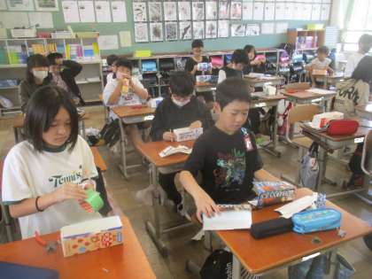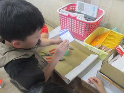 自分たちのもっているイメージに合わせて、ペンチや針金などを使って、活動していました。針金を90度に曲げるのがすこし難しそうでした。