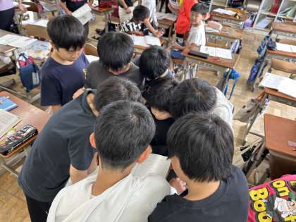 小数のかけ算の計算はバッチリ!なのでかけ算を使ったいろいろな問題を学習しました。今日は「面積・体積」けれども小数の時に公式は使っていいのか,たくさん喋って子どもたちだけで解決していました。