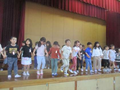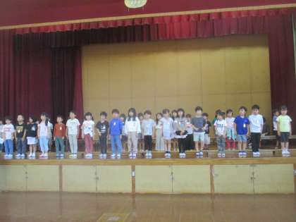 1年生を迎える会を開いてくれる2〜6年生にお礼の気持ちを伝えるために、言葉や出し物の練習をしていました。きっと1年生の「ありがとう」がみんなに伝わることと思います。