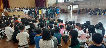 初めて劇を入れて全校児童の前で発表しました。発表前は「ドキドキする。」と言っていましたが,大きな声で楽しく発表できました。見ている人にも楽しんでもらえて,大満足の出来でした。他の学年の発表も興味津々,楽しんで見ていました。また,来年に活かせるといいですね。
