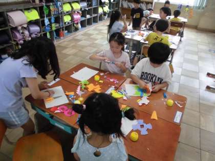 自分のお気に入りの形や色を見つけて、友だちに伝えることもできました。