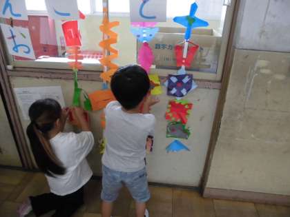 先週作ったかざりと、、今回作ったかざりをみんなで飾りました。