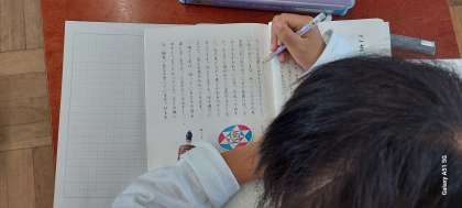 国語科で「こまを楽しむ」の学習をしています。「問い」と「答え」を見つけながら,表にまとめました。