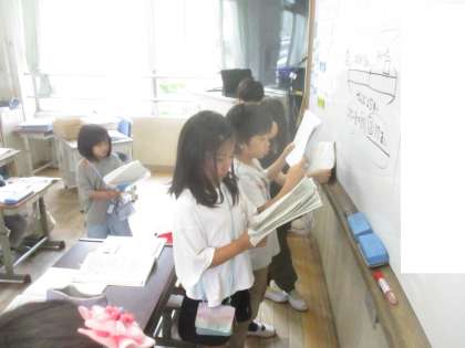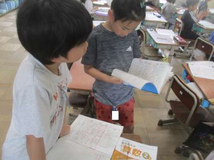 2年生は今、テープ図の学習をしています。じっくり自分で考えたり、友だちと相談したりしながら学習していました。