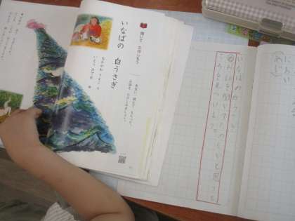 国語は「いなばの白うさぎ」に突入です。お話を読んで、楽しいと思ったところを発表していました。