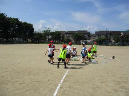 グループでバトンパスの練習をしっかりした後,リレー本番。うまくバトンの受け渡しができる子が増えてきました。後は,グループで声を掛け合ったり,渡し方や受け取り方をより工夫したりしていきましょう。タイムも上がってきました。