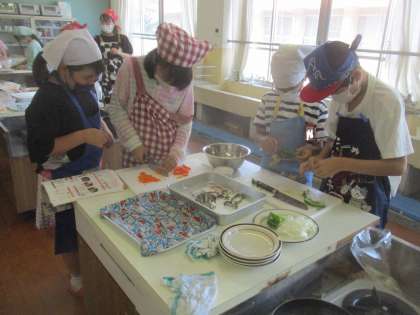 調理実習をしました。とても手際が良く、2時間授業の中で、調理・片付け・ふり返りまで余裕をもって、終えることができていました。