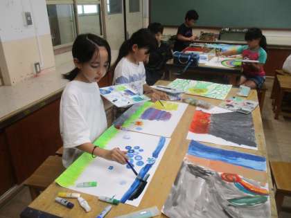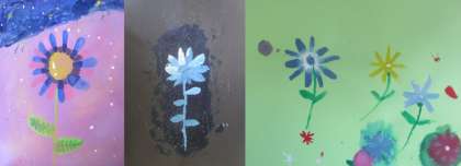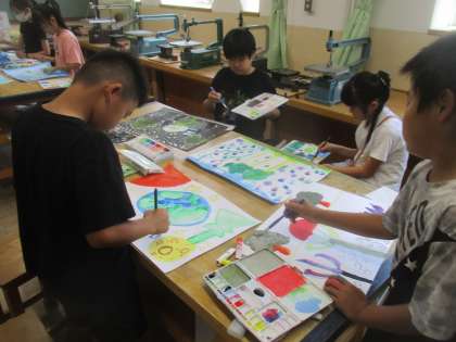 この前、イメージを膨らませた「まぼろしの花」を表現していました。いろいろな色や形、いろいろな技法があって見ているこちらまで楽しくなりました。