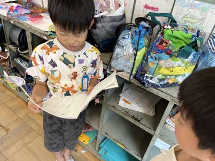 「スイミーはどのくらい黒いの?」「どのくらいのはやさなの?」など友達に聞いたり、スイミーになり切って答えたりしていました。