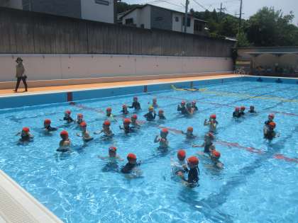 水深も深くなり、今日から水遊び。ドキドキしながらもがんばって学習していました。