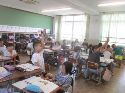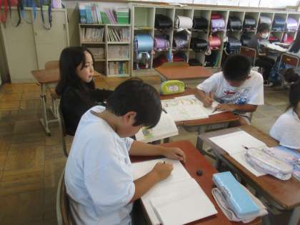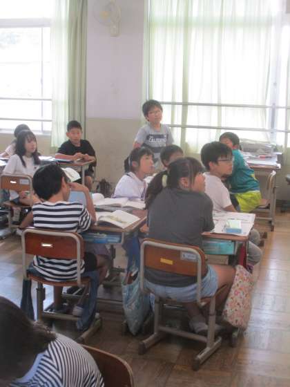 国語の学習の様子です。様子や行動を表す語句に気をつけて読み、友だちと考えを交流していました。