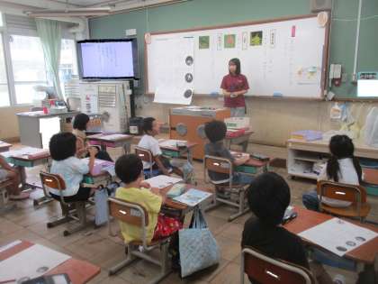 1年生が説明文を読んでいました。そして、問いの文について学習していました。これから6年生まで使う大事な学習です。