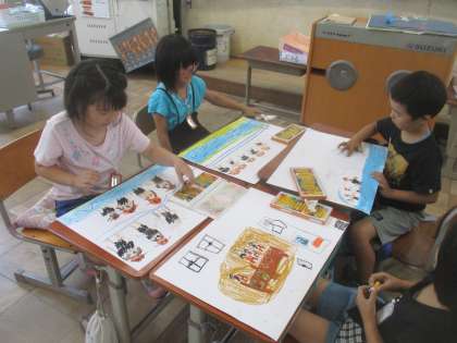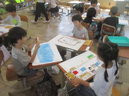 学校で楽しかったことを絵にして友だちに伝える学習をしました。もうすぐ1学期が終わりますね。この1学期にどんなことがあったのかな。