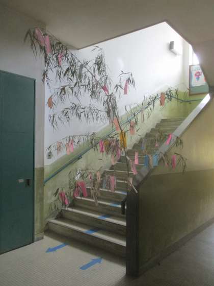 7月7日は過ぎてしまいましたが、今年度も放課後まなび教室の先生が七夕かざりをしてくださいました。七夕はいいお天気でしたね。子どもたちのお願いが届いていますように…