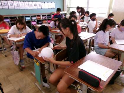 夏休みの自由研究で、どんなことをしたか友だちと交流していました。いろいろな研究があって、おもしろかったです。