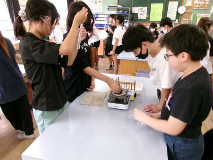 見た目や蒸発したら残るもの等から、水溶液について調べていました。
