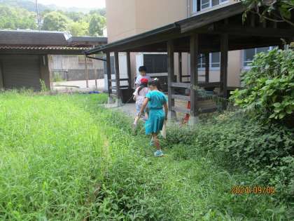 中庭で昆虫などの生き物を探しました。「どこに,どんな生き物がいるかな?」「どうしてそこにいるのかな?」を考えていきます。