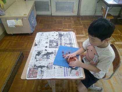 初めての粘土、初めての作り方にドキドキしながら作りました。