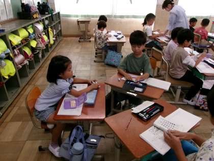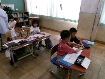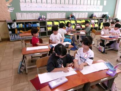 友達とペアになって、問題を出し合っていました。ノートもとっていて、だいぶ授業の形に慣れてきていると感心しました。
