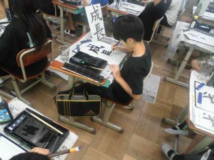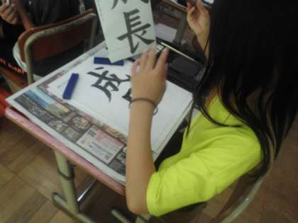 書き順や字形に気を付けて「成長」という文字を書きました。静かに姿勢よく自分の成長をかみしめて書いている姿が素晴らしかったです!